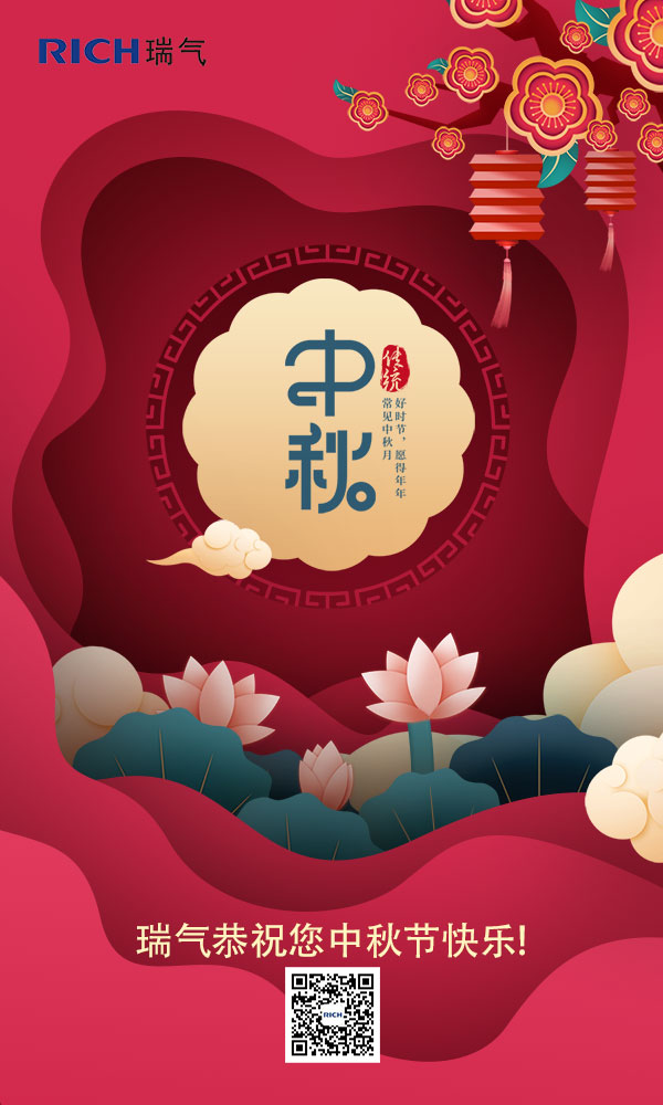 秋風送爽,丹桂飄香!值此中秋、國慶“雙節”來臨之際,瑞氣公司向一直以來理解和支持我們工作的新老客戶、合作伙伴及社會各界朋友表示衷心的感謝和最美好的祝愿,恭祝您和您的家人節日快樂、闔家幸福!